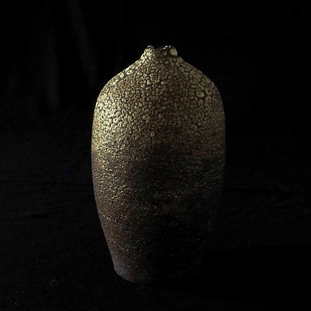 A former graphic designer and photographer, Nathalie Richard trained in ceramic techniques in 2016 and opened her studio in Paris. Her work focuses on the relationship between clay and glaze, explored through harmony and contrast. Working mainly with black chamotte stoneware—and occasionally porcelain—she reveals the forces embedded in matter, from mineral density to watery reflections. Primarily wheel-thrown, her forms are then off-centered and deformed, producing dense, volcanic silhouettes softened by sensuous curvature.