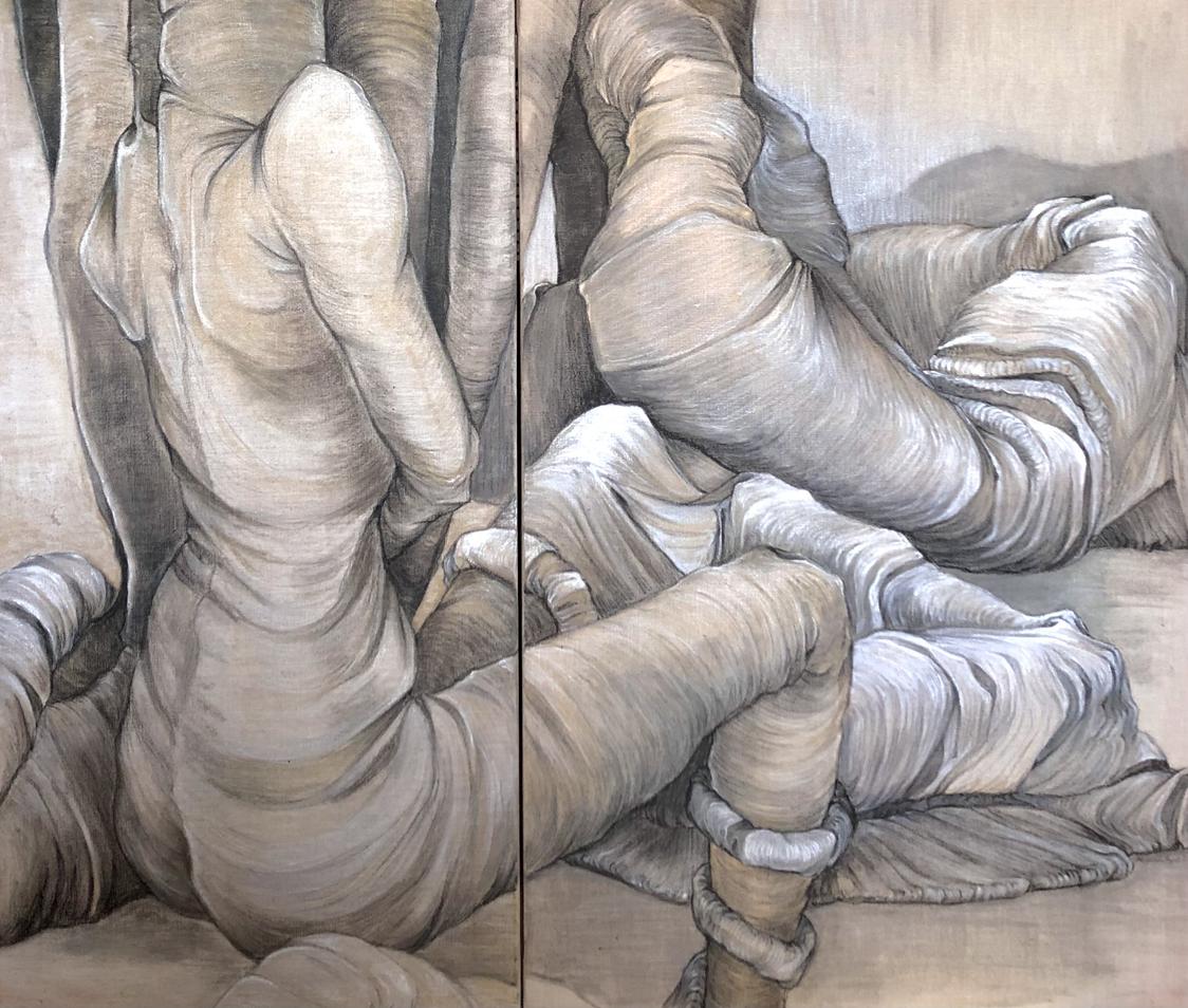 The exhibition questions the continuity of worlds—biological, spiritual, and symbolic—and conceives origin as an impulse toward the infinite.